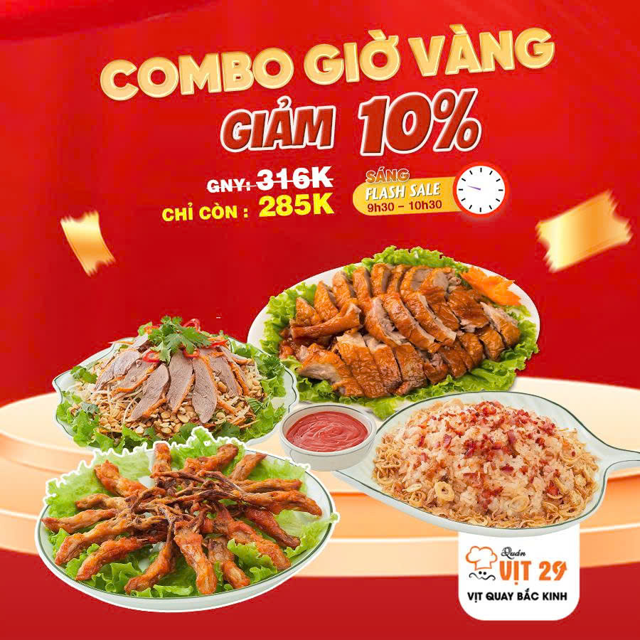 📋 Thực đơn: Vịt Quay Bắc Kinh (đĩa nhỏ) Lưỡi Vịt Chiên (nhỏ) Nộm Vịt (nhỏ) Xôi Vịt